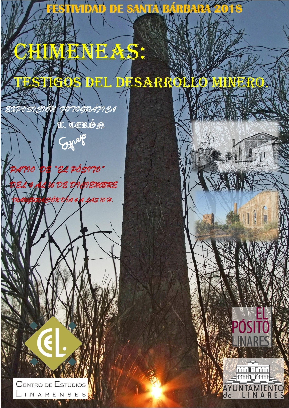 Con motivo de la festividad de Santa Bábara se inaugurará una exposición de fotografía con el título Chimeneas: testigos del desarrollo minero, organizada por el CEL en colaboración con el área de Turismo. Será el día 4 de diciembre, a las 10 horas, en el patio de El Pósito y se podrá visitar hasta el día 16. Las fotografías de las chimeneas son obra de Tomás Cerón y las fotografías históricas (mina de Arrayanes, mina y fundición de La Cruz, Adaro y Pozo San Vicente) pertenecen al archivo del fotógrafo linarense Espejo.